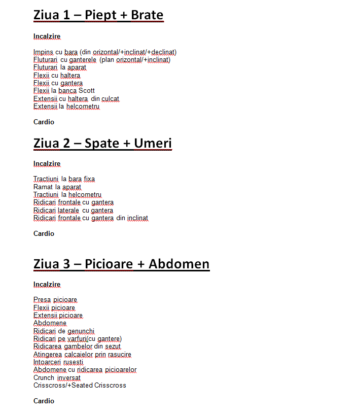 Programul mi se pare cam incomplet si sunt unele exercitii in plus care inlocuiesc exercitiile de baza mentionate mai sus pentru piept si triceps!