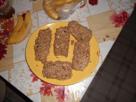 Am facut 5 batoane, fiecare dintre ele contine 760 calorii, 64 carbo, 22 proteine.
