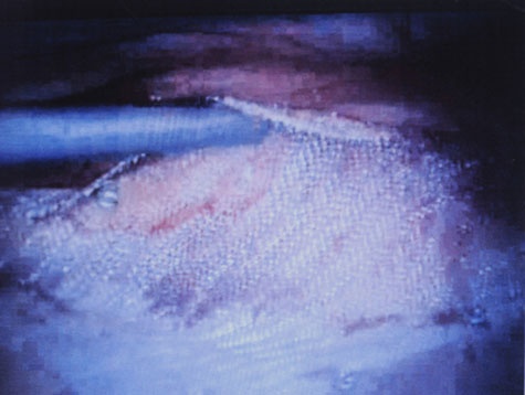 Aplicare plasa cu prolen prin fixare cu agrafe Protack la doi cm decalare.